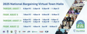Join our National Bargaining Town Hall Calls! At 6PM on May 8 and 7AM on May 9, we’re going to be holding a town hall call so you can hear what has happened in the first national bargaining session. Mark your calendar now and keep an eye out for the information to join this important call. Calls like this are a key way you can stay involved in bargaining.